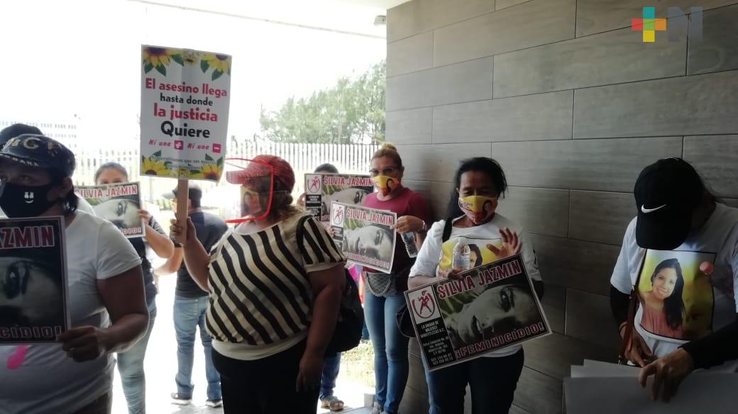 La señora Silvia Alpuche llegó acompañada de un contingente de más de 50 hombres y mujeres que con playeras, carteles y cubrebocas con fotos de la víctima, piden que se haga justicia.