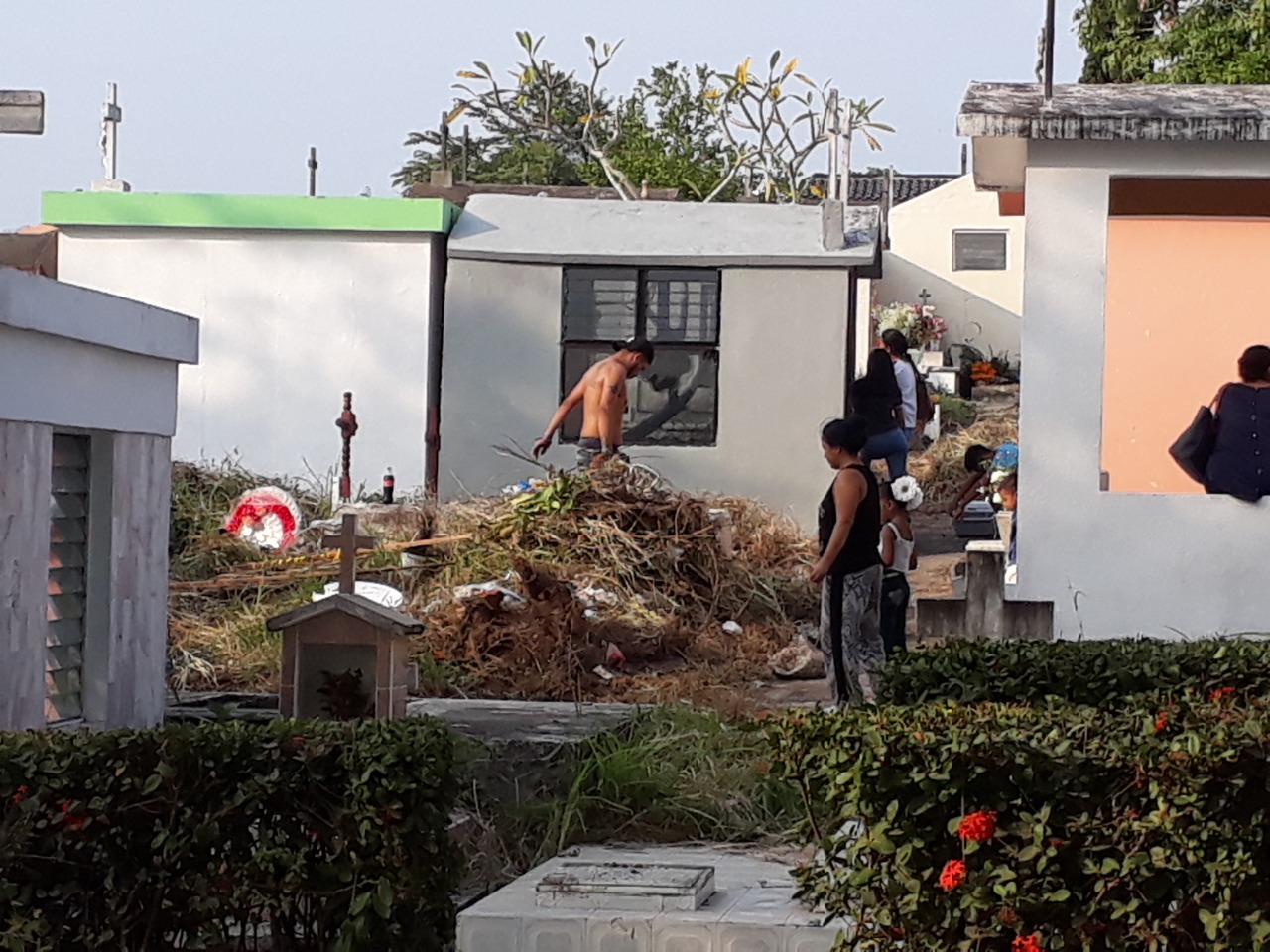 Tuxpan, Ver.- Con el objetivo de mejorar las instalaciones de los panteones municipales de Tuxpan, autoridades realizan tareas de limpieza para que los campos santos luzcan limpios durante este día de las madres.