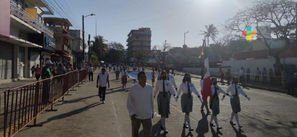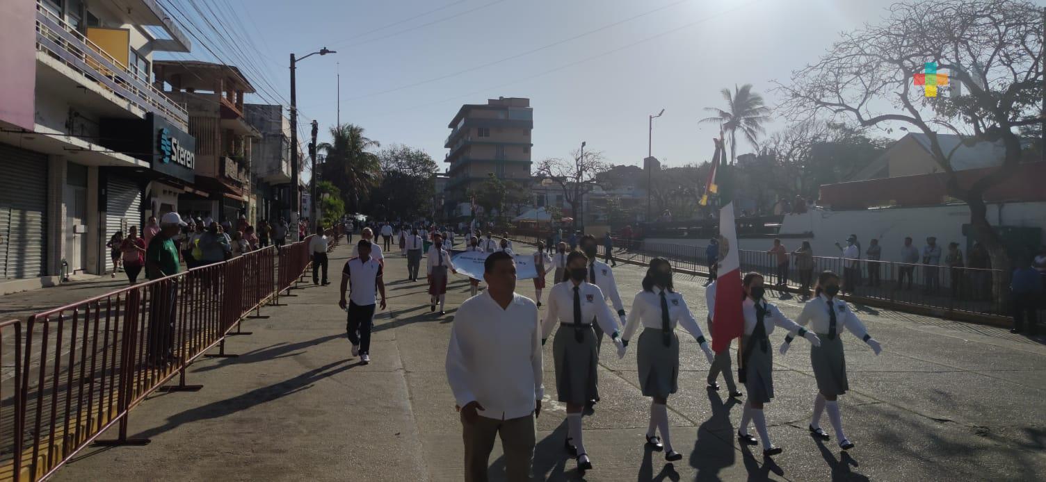 Coatzacoalcos, Ver.- Con un desfile donde participaron más de 20 instituciones educativas, se realizó la ceremonia Conmemorativa al 83 aniversario del Día de la Bandera.