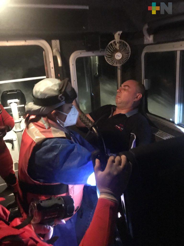 Los elementos de la Secretaría de Marina (Semar) trasladaron al tripulante hasta el muelle de la «T» donde fue movilizado a un hospital particular para recibir la atención médica.