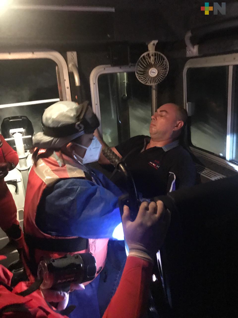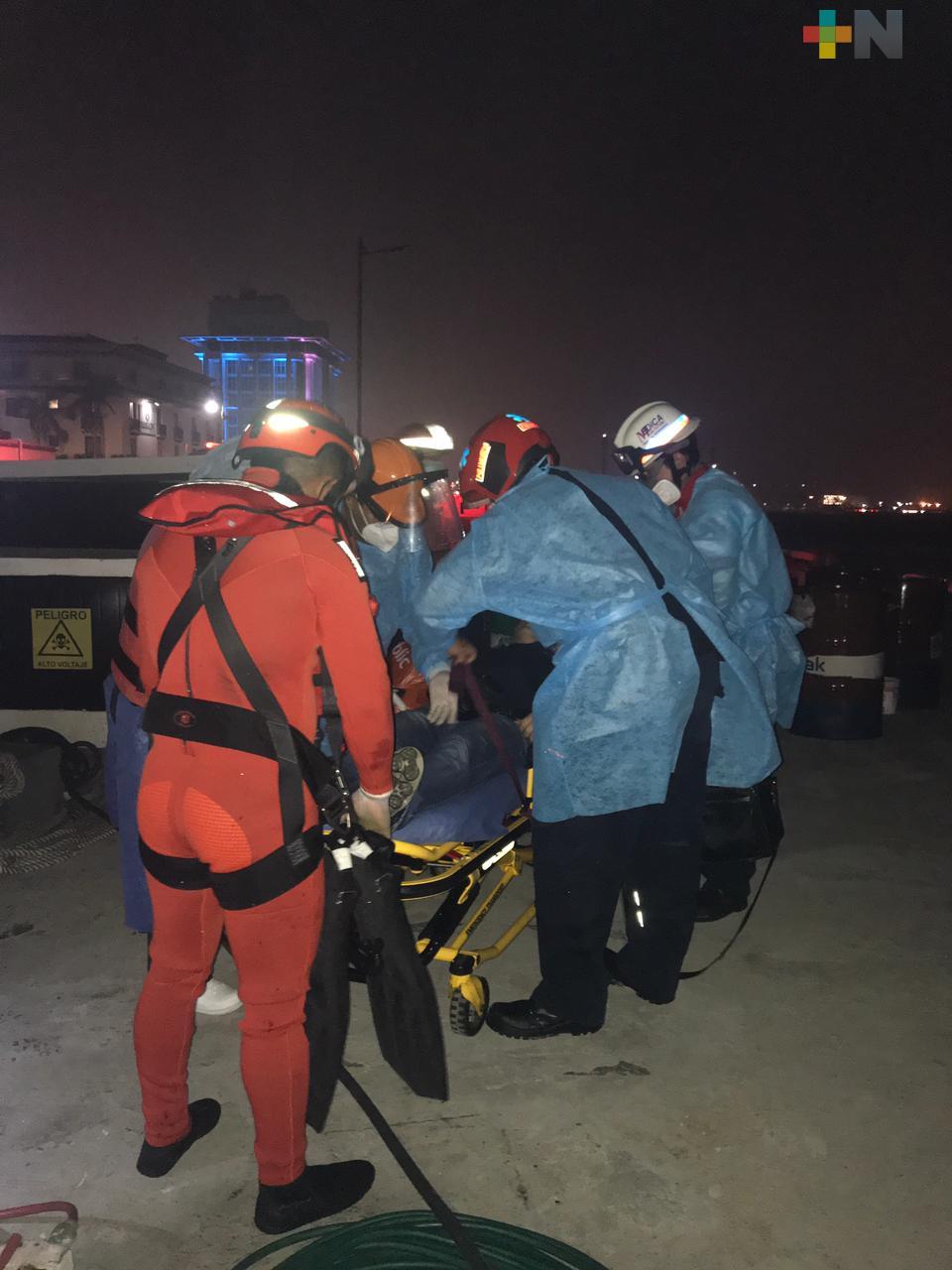 Los elementos de la Secretaría de Marina (Semar) trasladaron al tripulante hasta el muelle de la «T» donde fue movilizado a un hospital particular para recibir la atención médica.
