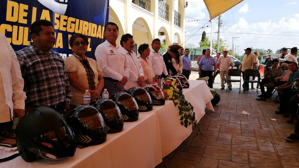 Representantes de la dirección general de Tránsito, así como de Seguridad Pública y del Ayuntamiento de Carrillo Puerto, hicieron la entrega de casco a representantes populares de diversas localidades del municipio y participaron en una actividad didáctica sobre educación vial con niños.