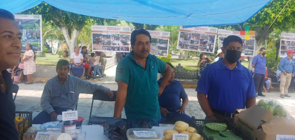 En esta región emprendedores que se vieron beneficiados, expusieron sus productos derivados de varios cultivos, artesanías de diferentes tipo como en piel y bordados, así como cosechas del programa Sembrando Vida.