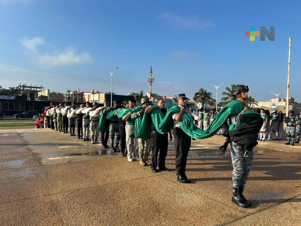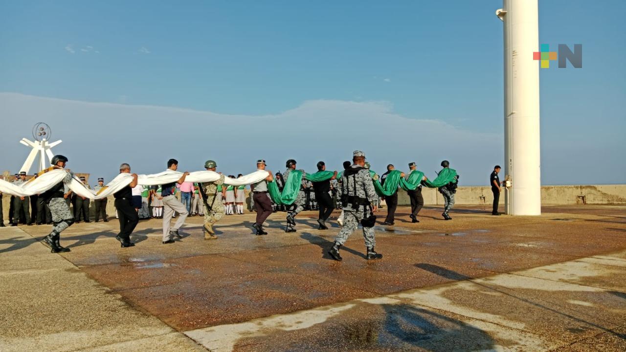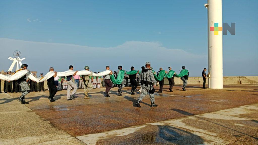 Realizan honores a la bandera en el malecón costero de Coatzacoalcos