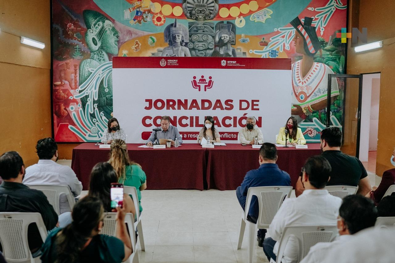 Tuxpan, Ver.- Con el objetivo de resolver cualquier conflicto laboral bajo tutela y observancia de la Junta Local 2 de Conciliación y Arbitraje, se llevó a cabo en este municipio la “jornada de conciliación” encabezada por autoridades de la Secretaría del Trabajo, Previsión Social y Productividad (STPSyP).