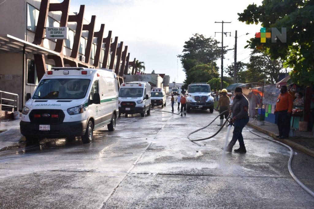 Coatzacoalcos, Ver.- Las autoridades de Protección Civil realizan acciones de limpieza en «edificios enfermos» o temporalmente «enfermos» ubicados en la ciudad y puerto de Coatzacoalcos, con la intención de mitigar los casos de contagio y propagación del virus del SARS-CoV-2.