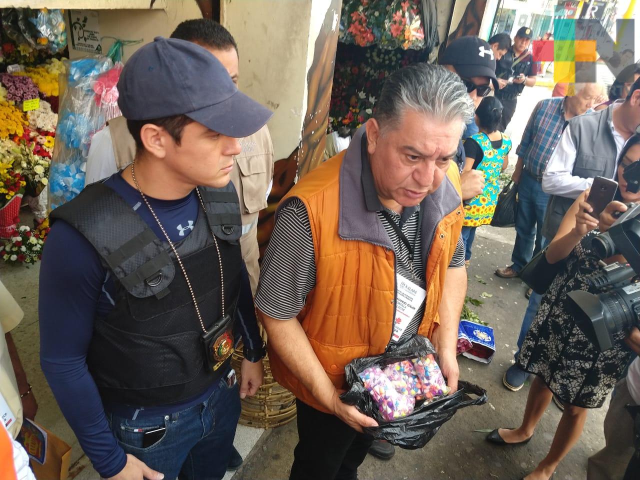 Xalapa, Ver.- La Fiscalía Especializada en Investigación de Delitos Ambientales y Contra los Animales junto con la Secretaría de Protección Civil y el Ayuntamiento de Xalapa, llevaron a cabo un operativo sorpresa en mercados y comercios ambulantes del centro de esta ciudad para decomisar material explosivo con motivo de las fiestas patrias.