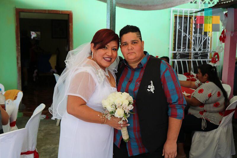 Tres Valles, Ver.- Ángela León Cruz y Rosario Hernández Herrera decidieron unir sus vidas en ceremonia de corte religioso, para ser felices incluso en la eternidad.
