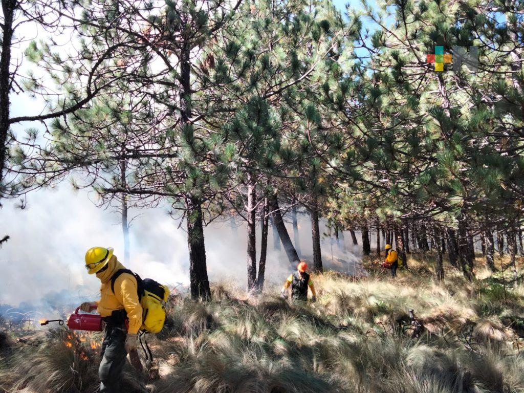 Perote, Ver.- Brigadistas de la Comisión Nacional de Áreas Protegidas y de la Comisión Nacional Forestal (Conafor) realizaron este martes una quema prescrita en el Parque Nacional Cofre de Perote, con el objetivo de evitar que la acumulación de troncos y hojas secas sirva de combustible y se provoquen incendios forestales.