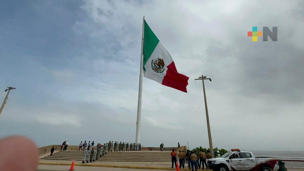 En esta actividad se izó una bandera con peso de entre 70 y 80 kilos, misma que forma parte del acervo existente en el puerto.