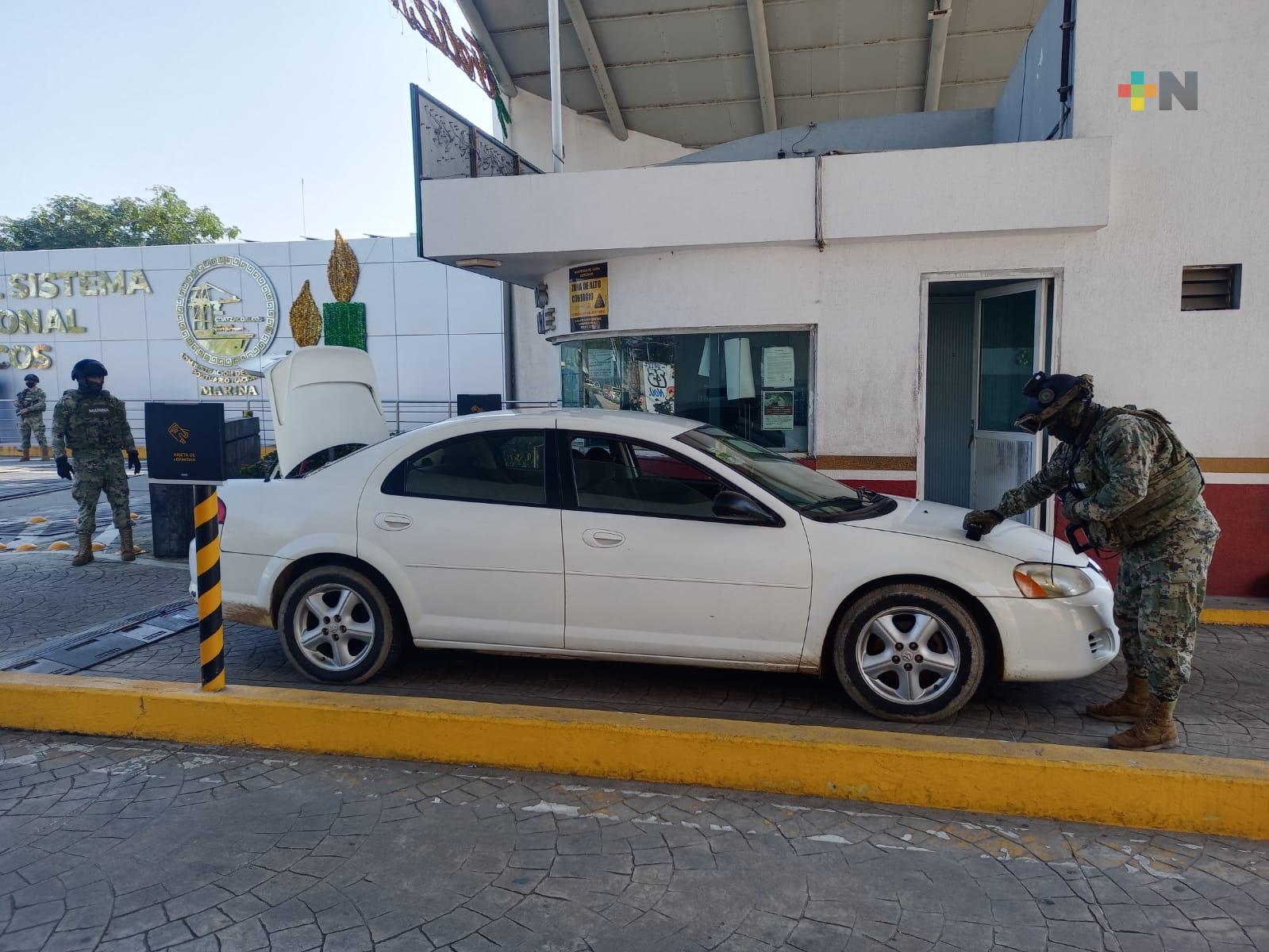Coatzacoalcos, Ver.- Una amenaza por coche bomba activó las alarmas en el Puerto de Coatzacoalcos, sin embargo, enseguida, personal de la Secretaría de Marina sitiaron el vehículo y realizaron acciones para contener la amenaza haciendo incluso participación de un binomio canófilo.