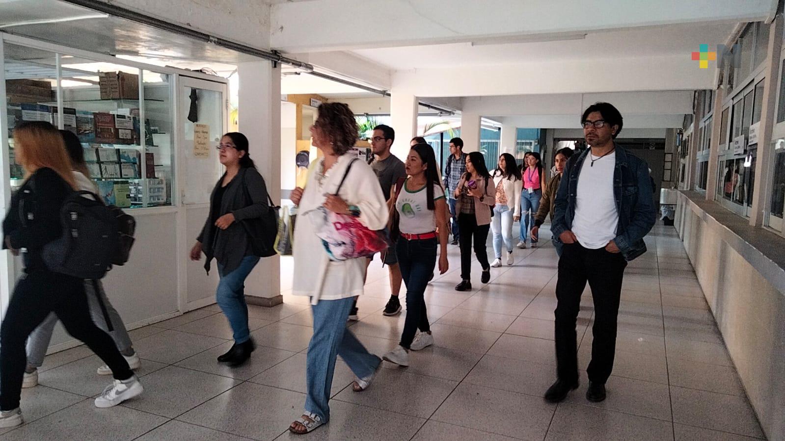 Realizan simulacro de sismo estudiantes del sistema abierto de la UV