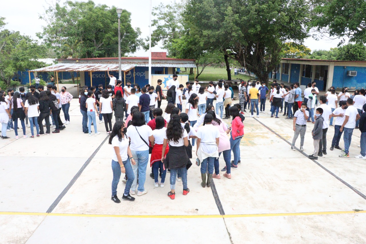 Nanchital, Ver.- Un simulacro de evacuación por fuga de productos químicos se realizó en la Escuela Secundaria Técnica Industrial 118 de Nanchital.