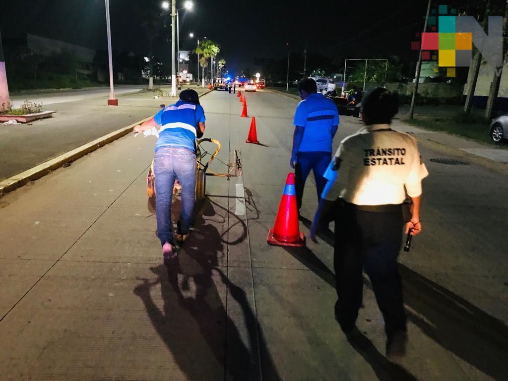 Xalapa, Ver.- La Secretaría de Seguridad Pública (SPP) a través de la Dirección General de Tránsito y Seguridad Vial del Estado (DGTSV) realizó trabajos balizamiento en cuatro mil 500 metros de pasos peatonales en calles y avenidas del sur del estado, para brindar seguridad al peatón en los cruces de avenidas, y mejorar la circulación vehicular.