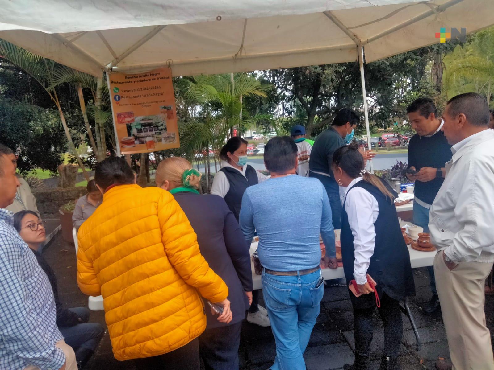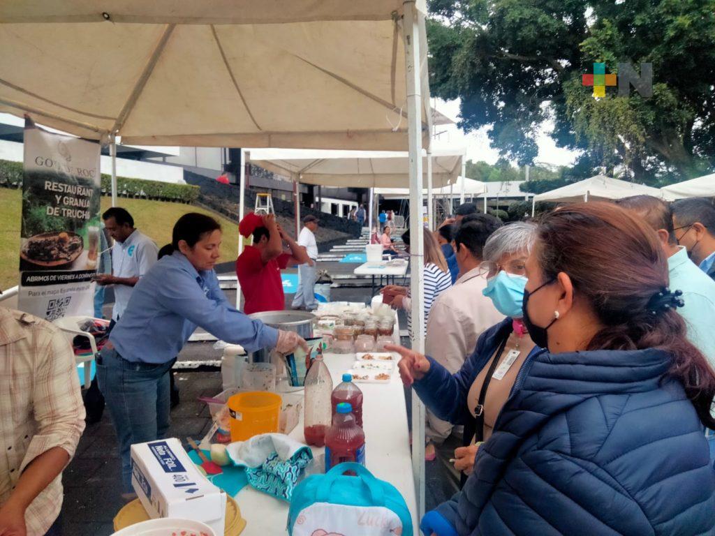 Xalapa, Ver.- Truchas con habanero, salsa verde, enchipotladas o ceviche se vendieron como “pan caliente” este jueves en la entrada de la Secretaría de Finanzas y Planeación (Sefiplan).