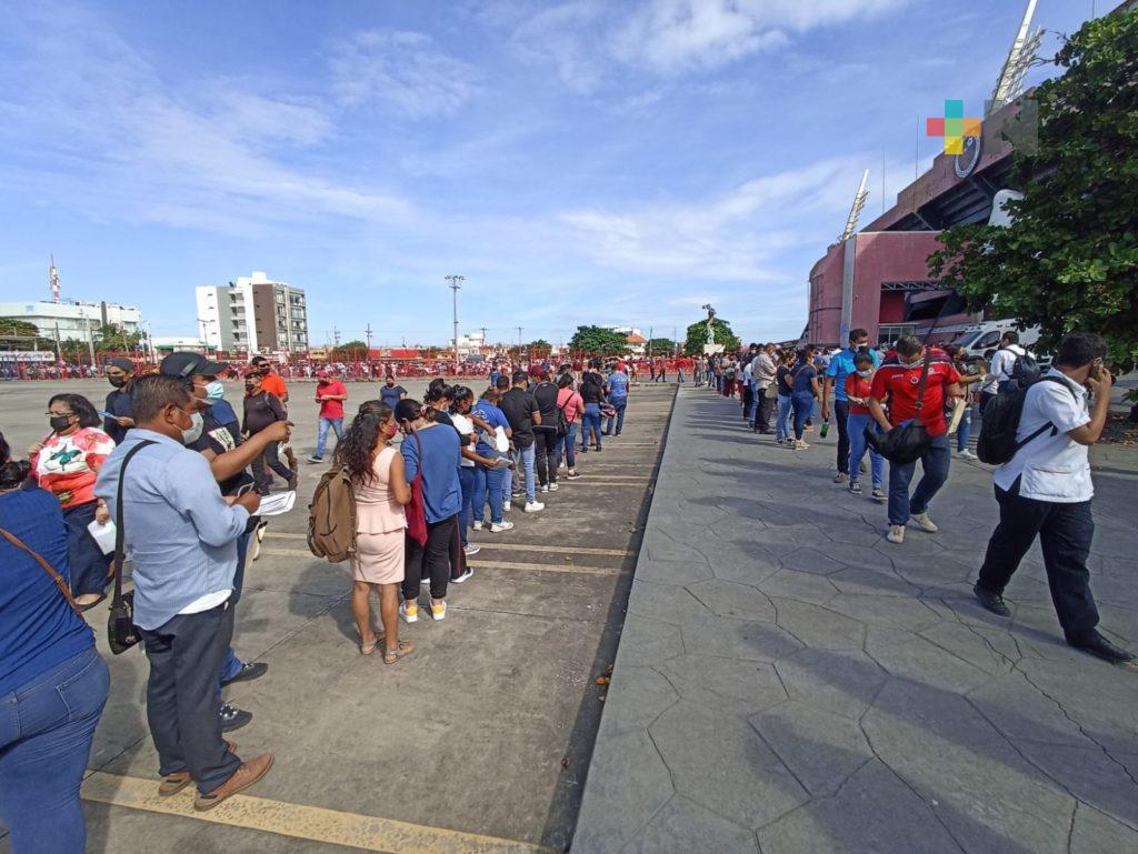Veracruz, Ver.- La jornada de vacunación extraordinaria para personas rezagadas en el estadio de fútbol, Luis de la Fuente «El Pirata», rebasó las expectativas.