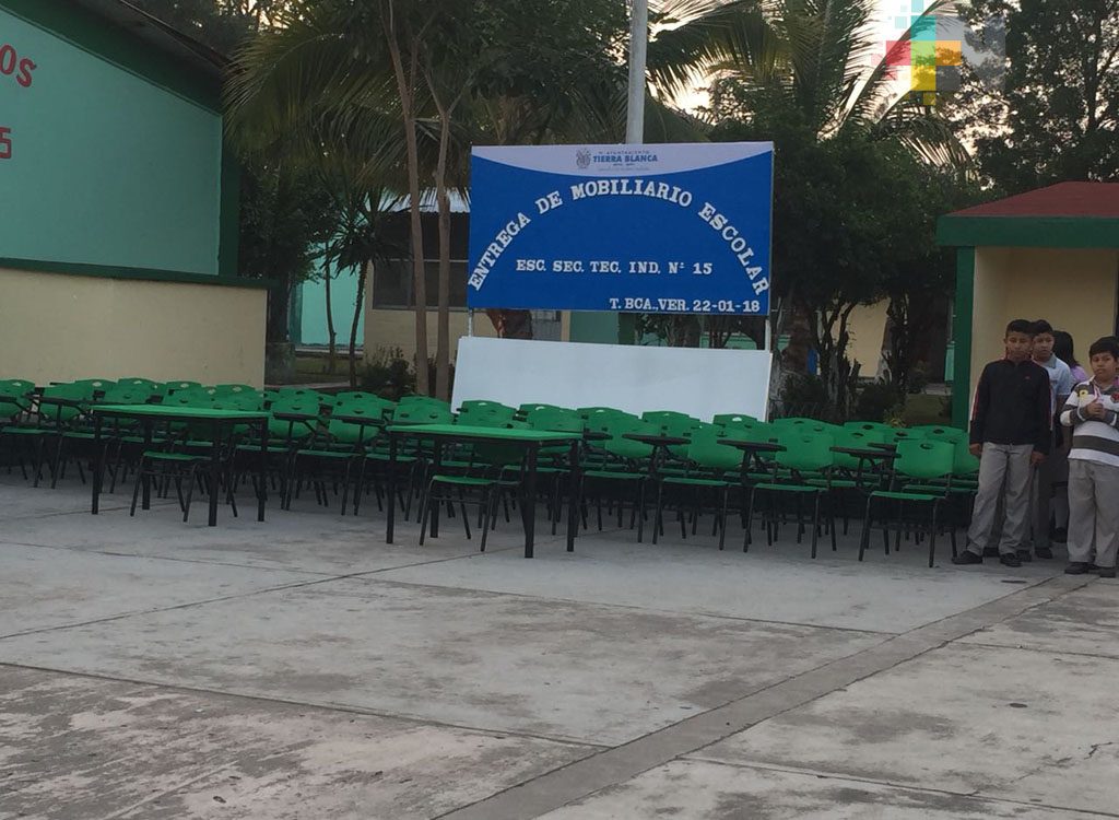 Recibe mobiliario escolar secundaria técnica en Tierra Blanca