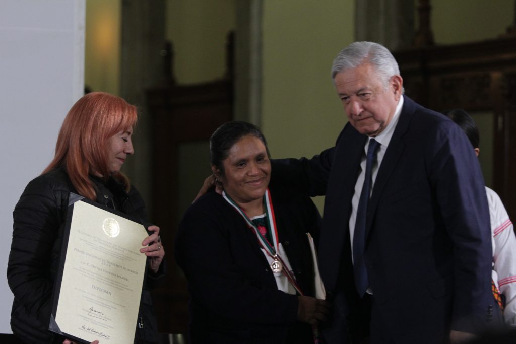 La premiación estuvo encabezada por el presidente López Obrador y la presidenta de la CNDH, Rosario Piedra Ibarra, entre otros integrantes del gabinete, en el Salón Tesorería.