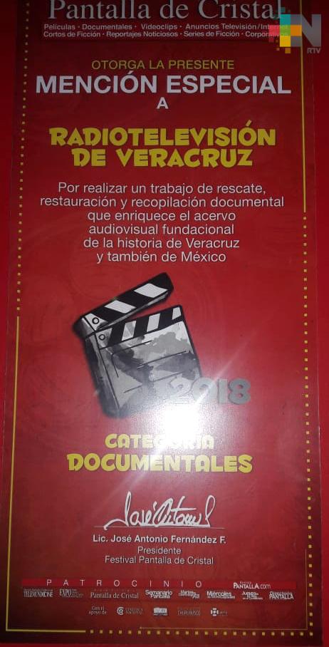 Xalapa, Ver.- El festival Pantalla de Cristal otorgó una mención especial a Radio Televisión de Veracruz, por realizar un trabajo de rescate, restauración y recopilación documental que enriquece el acervo audiovisual fundacional de la Historia de Veracruz y México.