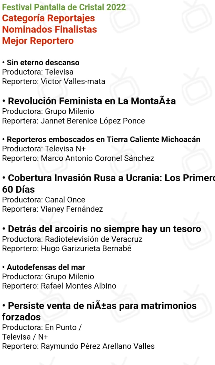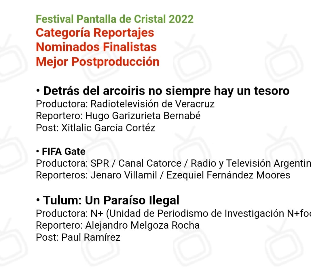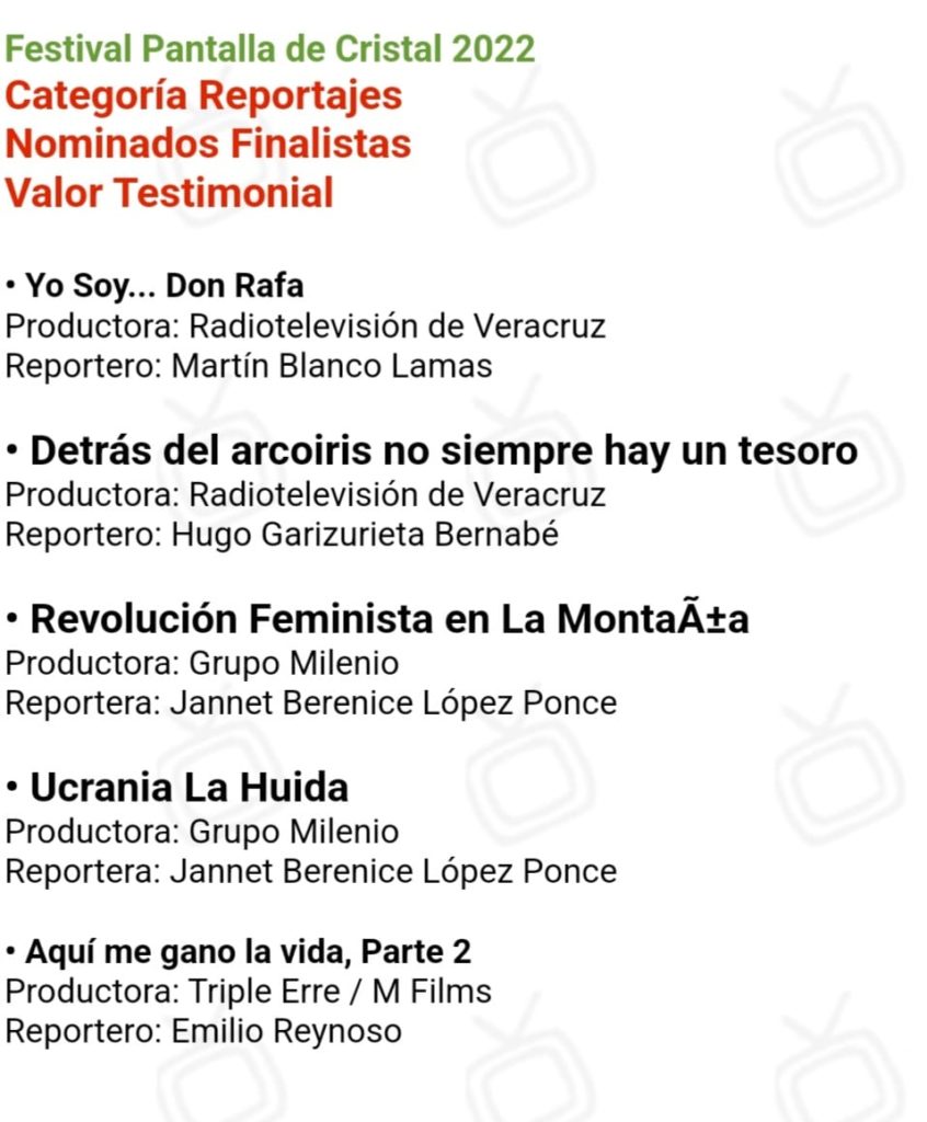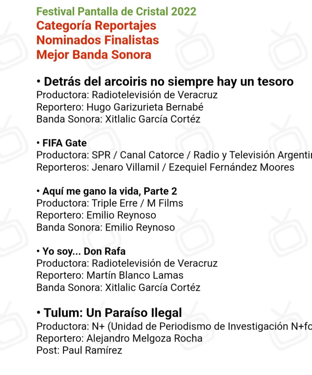 Xalapa, Ver.- Tres producciones audiovisuales y multimedia de Radiotelevisión de Veracruz han sido nominadas en once categorías de la próxima entrega de los Premios Pantalla de Cristal 2022.