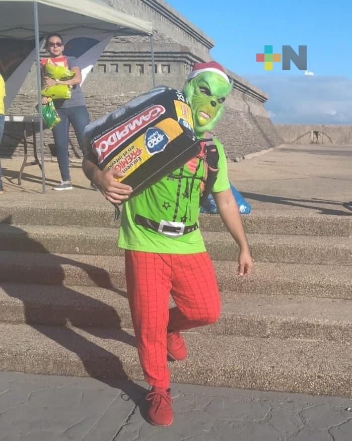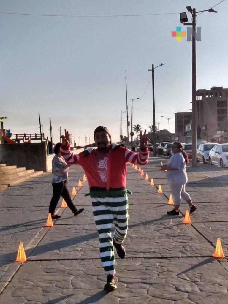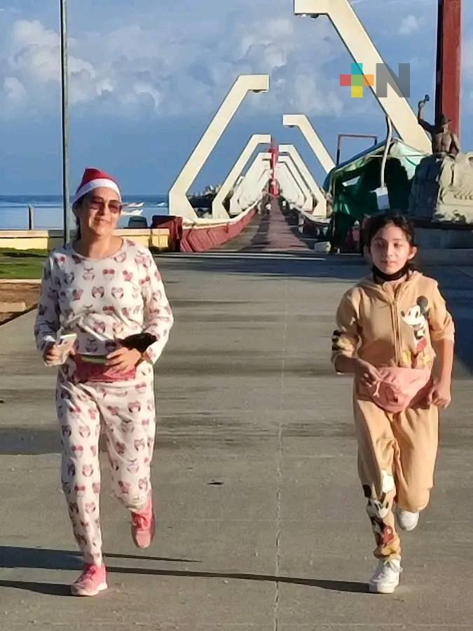 Algunos vestidos de grinch, otros en short y literalmente en pijama, corrieron sobre el malecón costero de la ciudad.