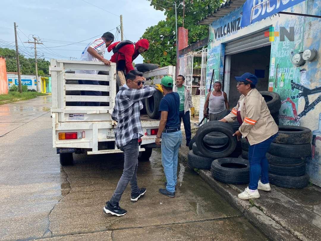 Coatzacoalcos, Ver.- En seis colonias de Coatzacoalcos se han recolectado 35 toneladas de cacharros y mil 858 llantas en desuso, todo esto como parte de la jornada de descacharrización y eliminación de criaderos de mosquito transmisor del dengue.