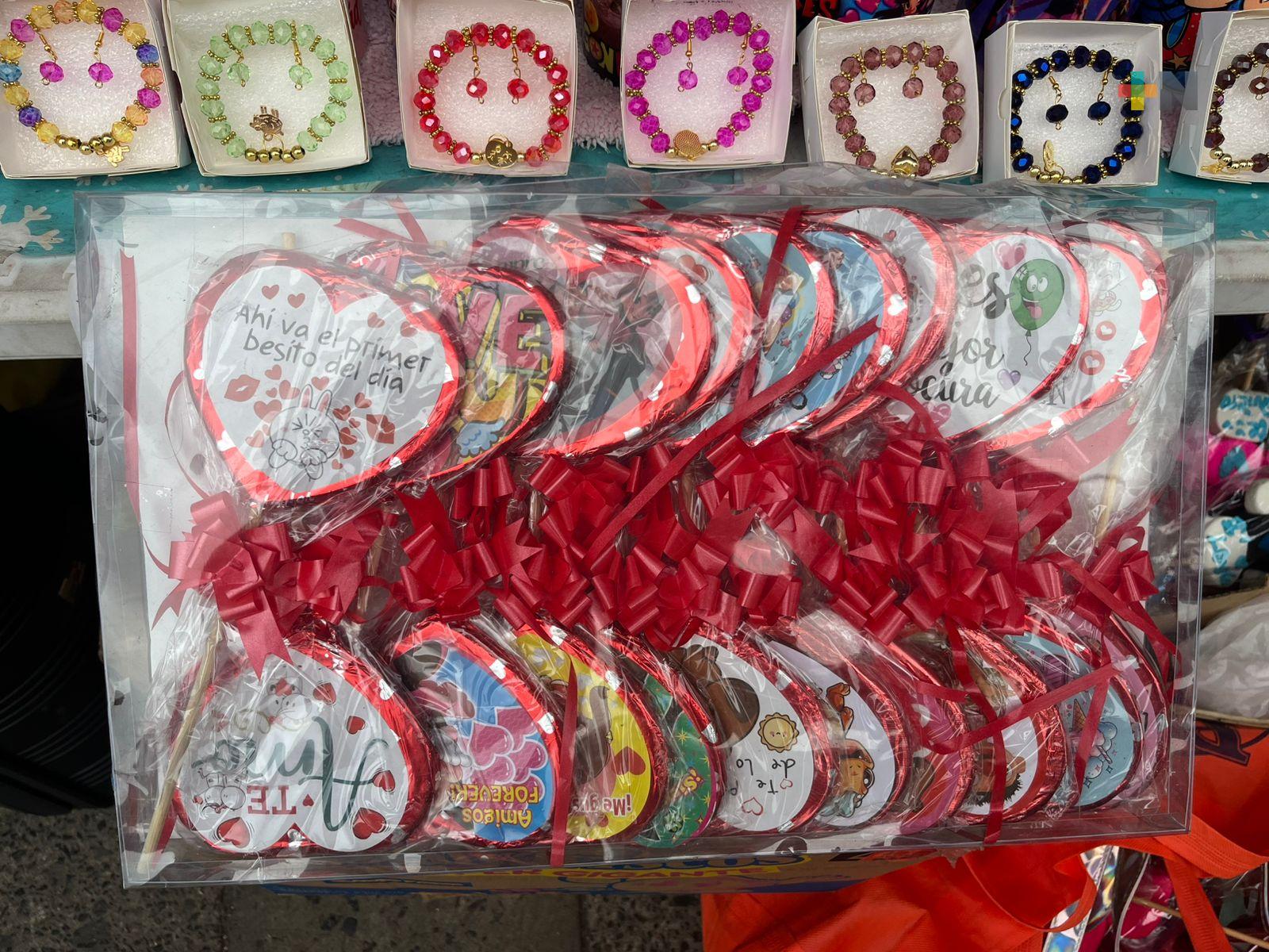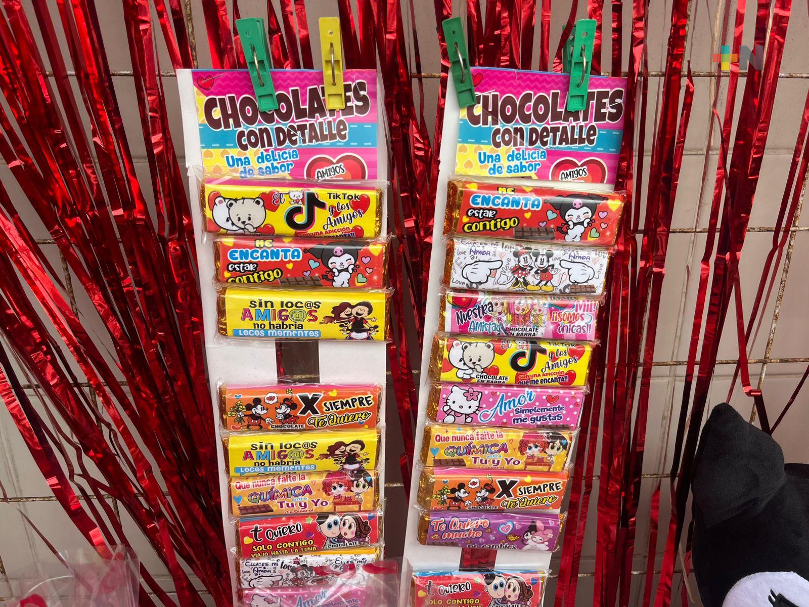 “Estamos manejando chocolates, paletas de caramelo, que es lo que más jala, lo tradicional; un detalle lo que la gente busca y es lo que más está vendiendo en estos días. Esos chocolatitos que son como tipo trufas, bombones, paletas de caramelo, paletas de chocolate, que es lo que se está manejando ahorita”, explicó un vendedor.