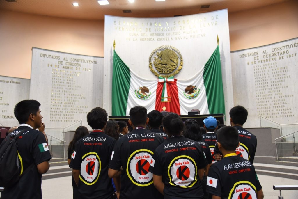 Previo a reunirse en la Sala Jesús Reyes Heroles, la Diputada dio a los jóvenes del Club de Judo un recorrido por las instalaciones del Congreso del Estado, en el que explicó las funciones legislativas y políticas que se realizan al interior de esta Soberanía, así como las atribuciones que confiere la Constitución a las diputadas y diputados para el óptimo ejercicio de la representación popular.