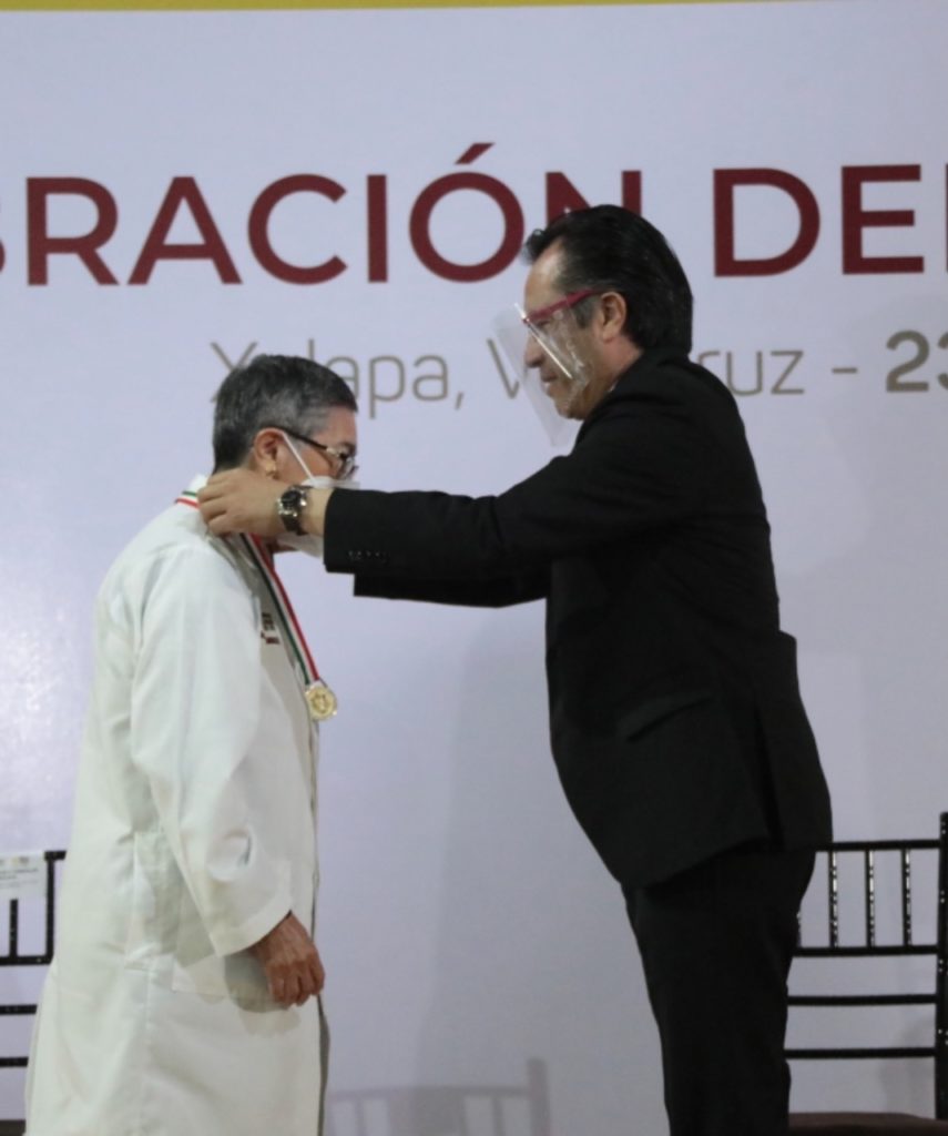 “Que vivan los médicos que no renunciaron a su ética profesional en esta pandemia; nuestro eterno agradecimiento a todas y todos”, manifestó ante la comunidad galardonada esta tarde con la Condecoración al Mérito Profesional Dr. Pedro Rendón Domínguez, por la Secretaría de Salud (SS) y los Servicios de Salud de Veracruz (SESVER).