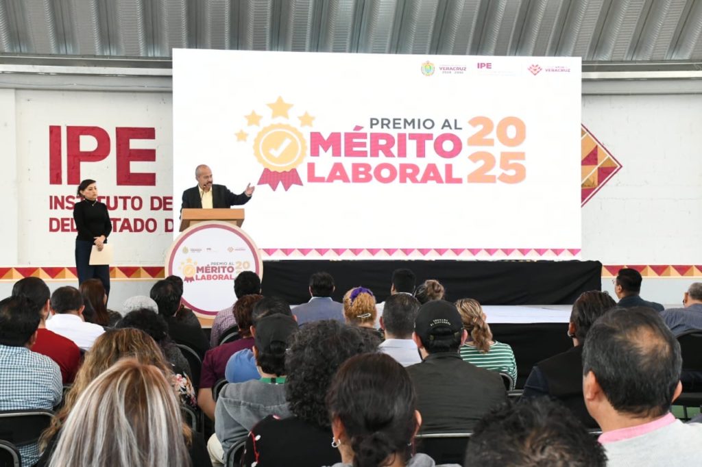 Xalapa, Ver.- El Instituto de Pensiones del Estado (IPE) realizó la entrega del Premio al Mérito Laboral 2025, en su primera edición, en reconocimiento al compromiso, desempeño y calidad humana de las y los trabajadores que conforman esta institución.