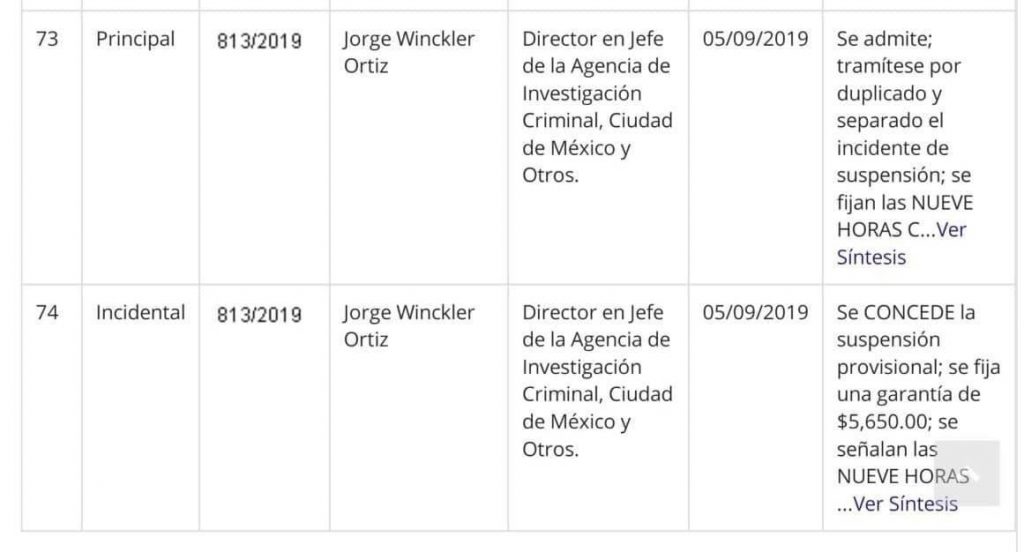 Cabe destacar que por este amparo se tuvo que pagar una garantía económica de 5 mil 650 pesos, el cual lo protege momentáneamente contra alguna detención ejecutada por parte de la Fiscalía General de la República (FGR) y la Agencia de Investigación Criminal.