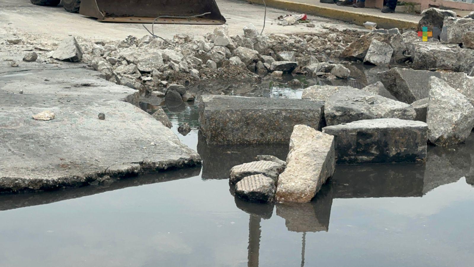 Con maquinaria pesada comenzaron a romper los topes, en uno de ellos incluso había un tubo de drenaje que ya no funcionaba, la calle estará cerrada mientras se realizan las tareas.