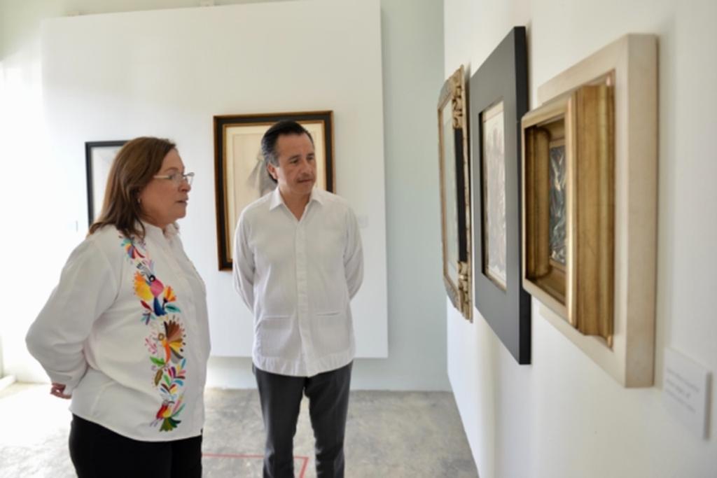 Tlacotalpan, Ver.- El gobernador del Estado, Cuitláhuac García Jiménez acompañado por la secretaria de Energía, Rocío Nahle recorrió en días pasados la exposición de Arte Recuperado que presenta el Instituto Veracruzano de la Cultura en el Centro Cultural Sotavento, ubicado en este municipio.