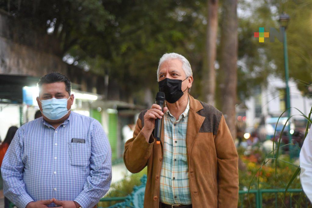 Xalapa, Ver.- Para mejorar la imagen urbana y la movilidad en un espacio distintivo de la ciudad, mediante un trabajo de colaboración en el que participó personal de distintas áreas del Ayuntamiento y la iniciativa privada se realizó el rescate de paraderos de autobuses, banquetas y el parque Revolución, en la zona de Los Sauces.