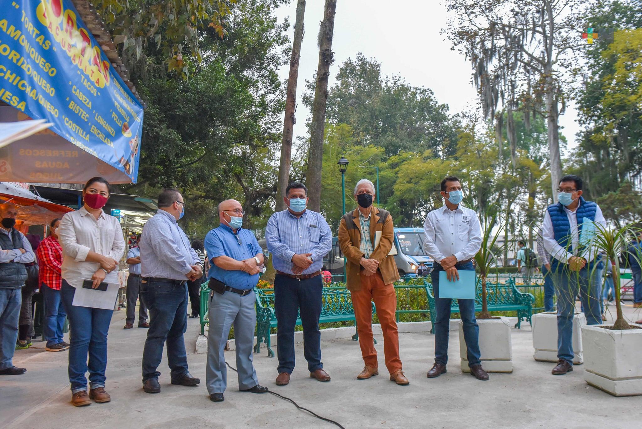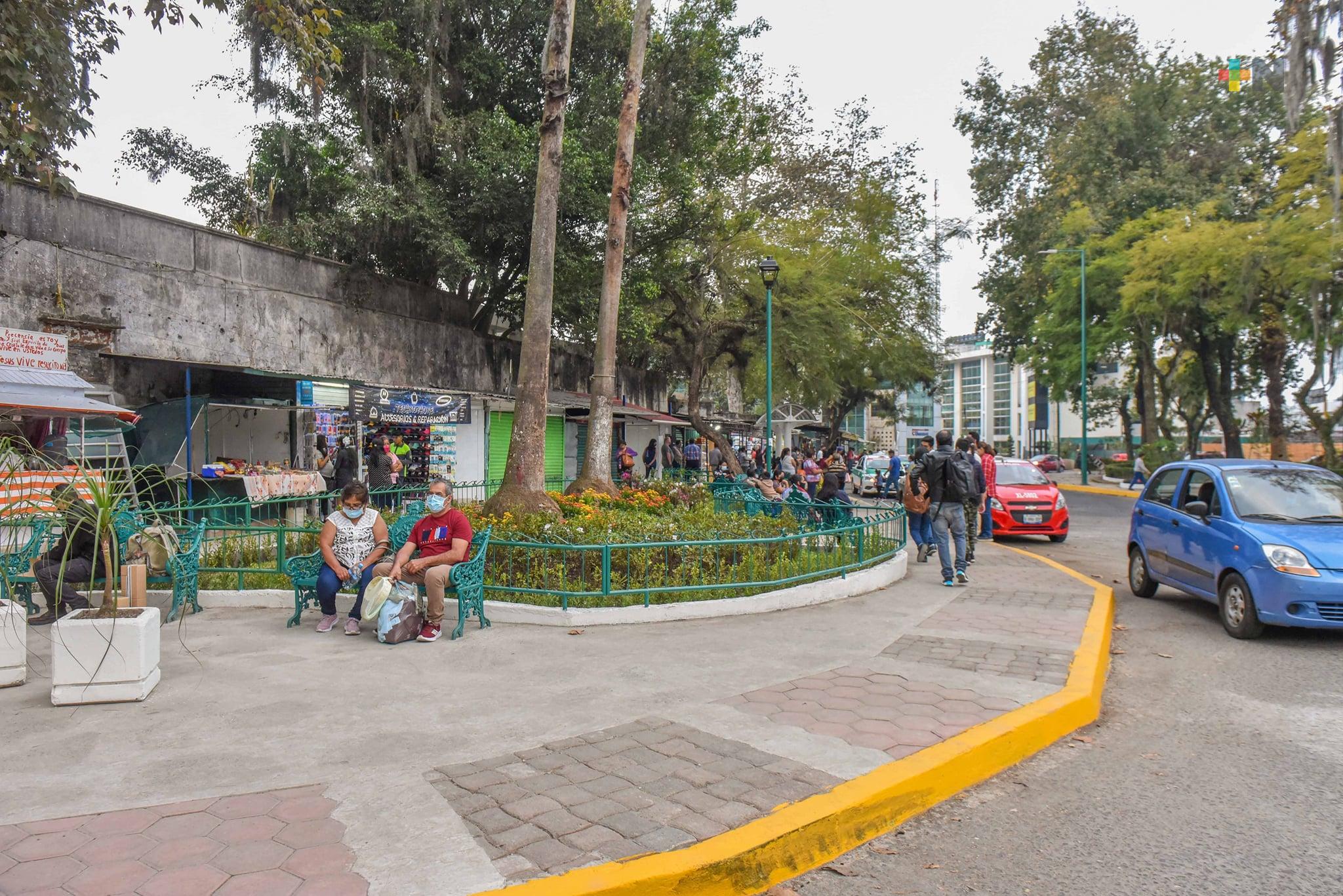 Xalapa, Ver.- Para mejorar la imagen urbana y la movilidad en un espacio distintivo de la ciudad, mediante un trabajo de colaboración en el que participó personal de distintas áreas del Ayuntamiento y la iniciativa privada se realizó el rescate de paraderos de autobuses, banquetas y el parque Revolución, en la zona de Los Sauces.
