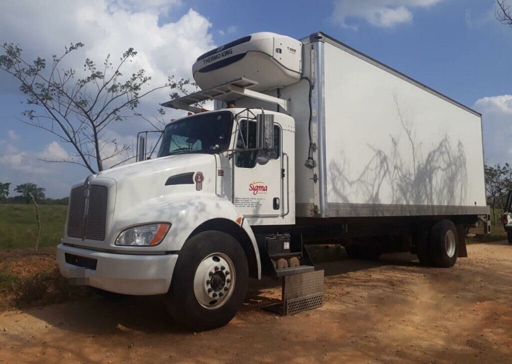 En un camino de terracería de la localidad La Caudalosa, en el municipio de San Juan Evangelista, los policías aseguraron un camión tipo torton, marca Kenworth, color blanco, con razón social “Sigma Alimentos S. A. de C. V.”, que estaba abandonado y contaba con reporte de robo.