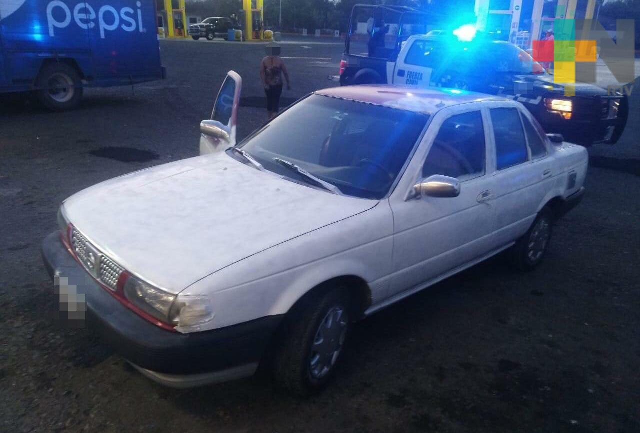 Del mismo modo, en otro operativo, en la Carretera Federal 140, tramo Xalapa-Veracruz, en el municipio de Emiliano Zapata, los elementos aseguraron un automotor marca Nissan, tipo Tsuru, placas XZG1-38A con reporte de robo. Además, hicieron detención del conductor y su copiloto; identificados como Justino “N”, de 36 años, y Rosaura “N”, de 32.