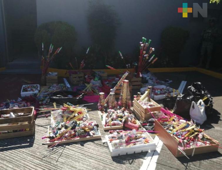 Finalmente, en Orizaba, en el mercado Melchor Ocampo, se aseguraron 250 kilogramos de pólvora, las cuales fueron entregadas a personal de Protección Civil para su destrucción.