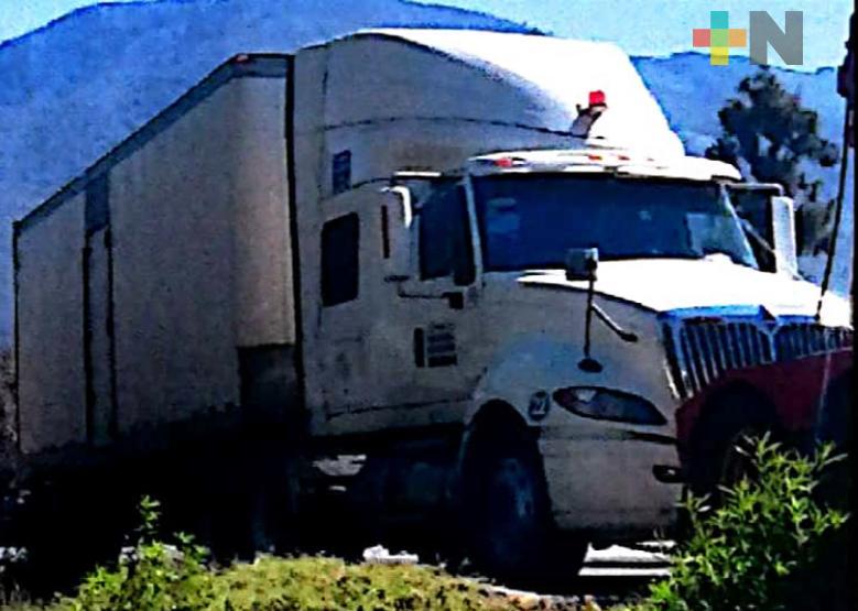 Asimismo, en Río Blanco fue asegurado un tracto camión marca Internacional con placas 14AJ9D y una caja seca marca Fruehauf, placas 397UM1; y en Xalapa se recuperó un Chevrolet, Corsa, placas YKH8316; todas las unidades contaban con reporte de robo.