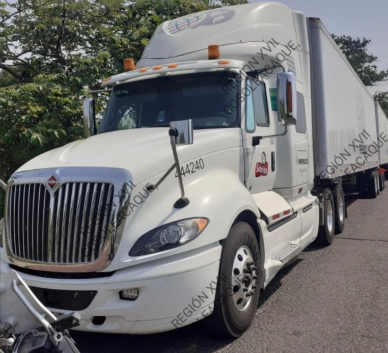 En Cosoleacaque, los efectivos aseguraron dos vehículos marca Nissan, tipo Tsuru con placas YGK-4266 y YLN015A, así como un tractocamión marca Internacional, placas LB95031, acoplado a dos cajas secas (láminas 6-HU-7343 y 6-HU-7360).