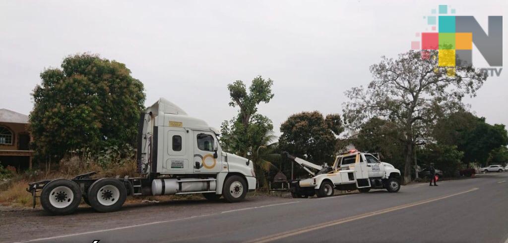 Asimismo, durante un recorrido preventivo, se ubicó un automotor marca Freightliner, modelo 2012 y con razón social Autotransportes Pirámide, que se encontraba abandonado y con reporte de robo; esto, a orilla de carretera en el km 83, en la localidad Puente Jula, municipio de Paso de Ovejas.