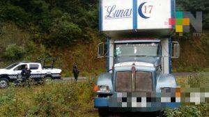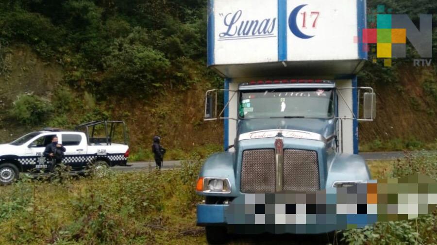 Mientras que en la Carretera Federal 131 Teziutlán-Perote, fue recuperado un camión abandonado, marca Kenworth, modelo 2005, color azul, con placas 379-AU2 y razón social Transportes Luna, el cual contaba con reporte de robo en el Registro Público Vehicular (REPUVE), que fue trasladado a Jalacingo.