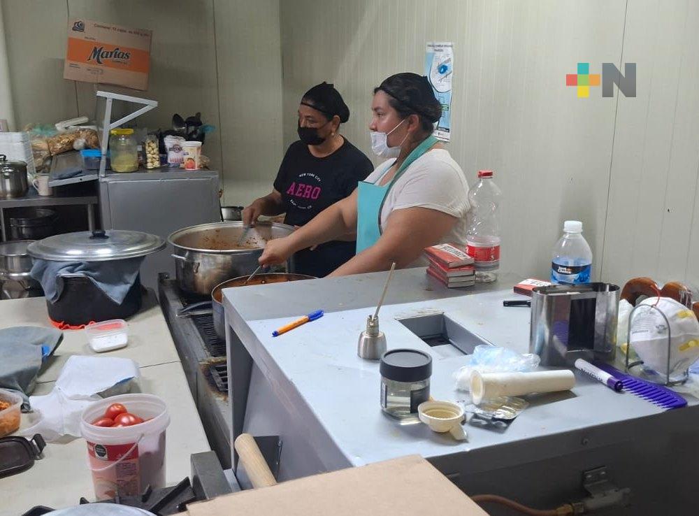 «La preparación de los alimentos se da en la mañana, huevito con jamón, café con leche. Al medio día es el plato fuerte. Ahorita hicimos un adobo con espagueti para ahorita el mediodía. Siempre hacemos mucha comida para todas las personas que están aquí», explicó Graciela Roque Martínez, cocinera voluntaria.