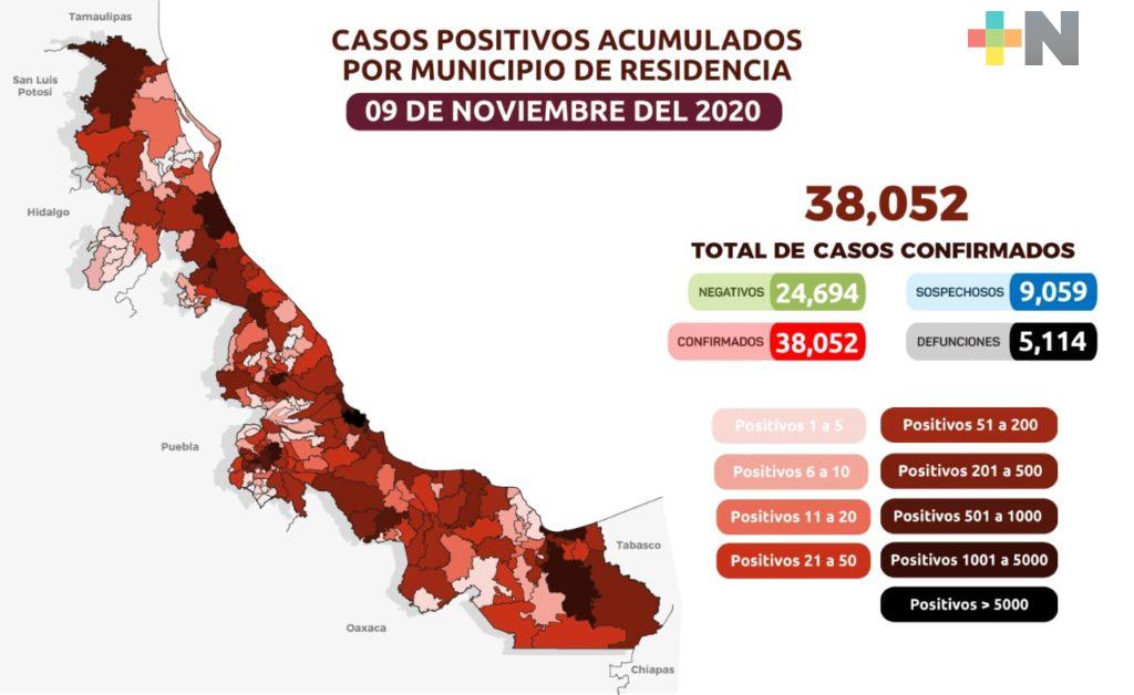 Xalapa, Ver.- La Secretaría de Salud en Veracruz informó que este lunes los casos positivos a Covid-19 ascienden a 38 mil 52 y han fallecido 5 mil 114 pacientes en 179 municipios.