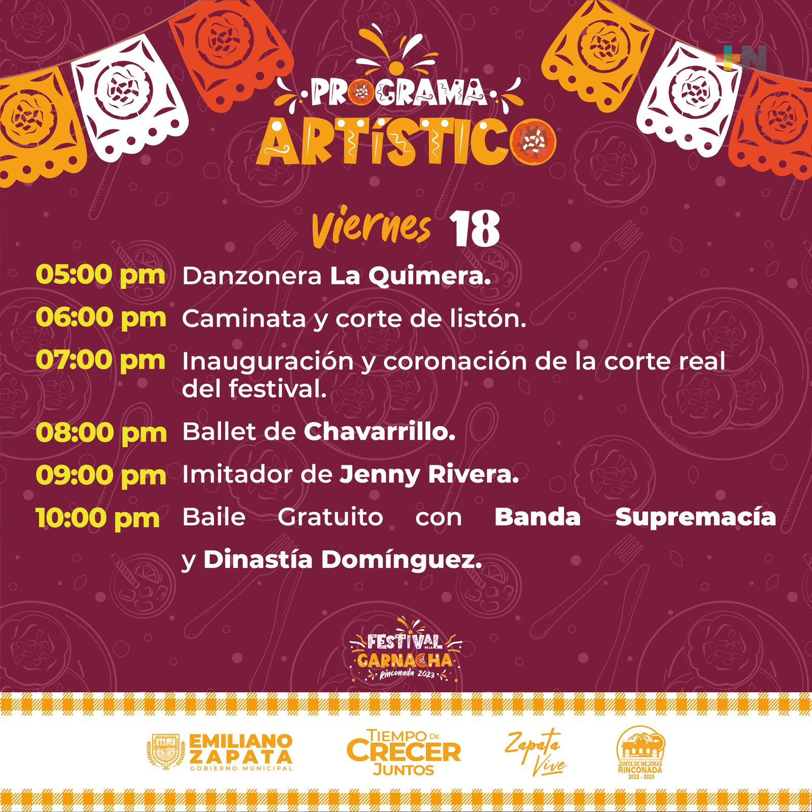 Emiliano Zapata, Ver.- Del 18 al 20 de agosto, el Festival de la Garnacha Rinconada 2023 “Juntos por el sabor” compartirá con sus visitantes este símbolo de la gastronomía veracruzana, concursos con grandes premios y bailes gratuitos en el Garnachódromo, en un ambiente 100 por ciento familiar.