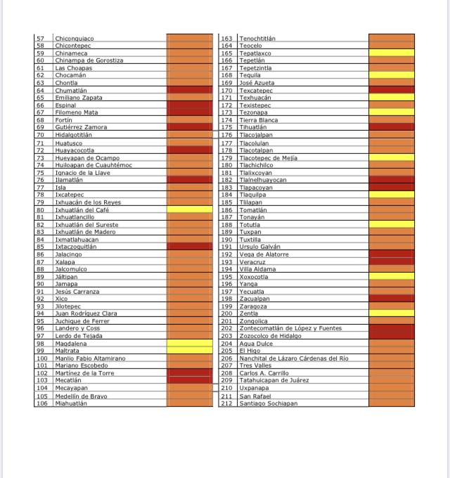 Destaca el caso de la capital del estado, ya que Xalapa pasó de color rojo a naranja.