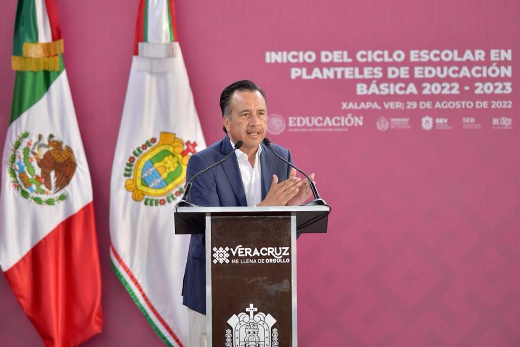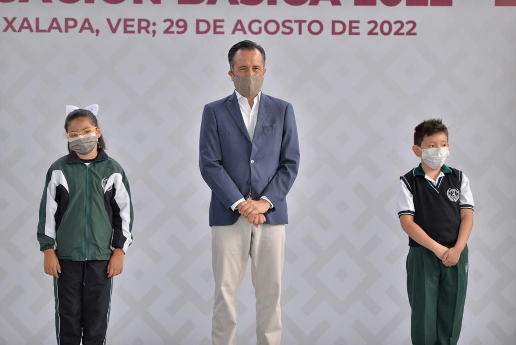 Xalapa, Ver.- Desde la escuela primaria ‘Avelino Bolaños’, el gobernador Cuitláhuac García Jiménez dio por inaugurado el ciclo escolar 2022-2023, con el principal exhorto para los maestros y maestras de «recuperar lo que se dejó de aprender en estos dos últimos años debido a la pandemia».