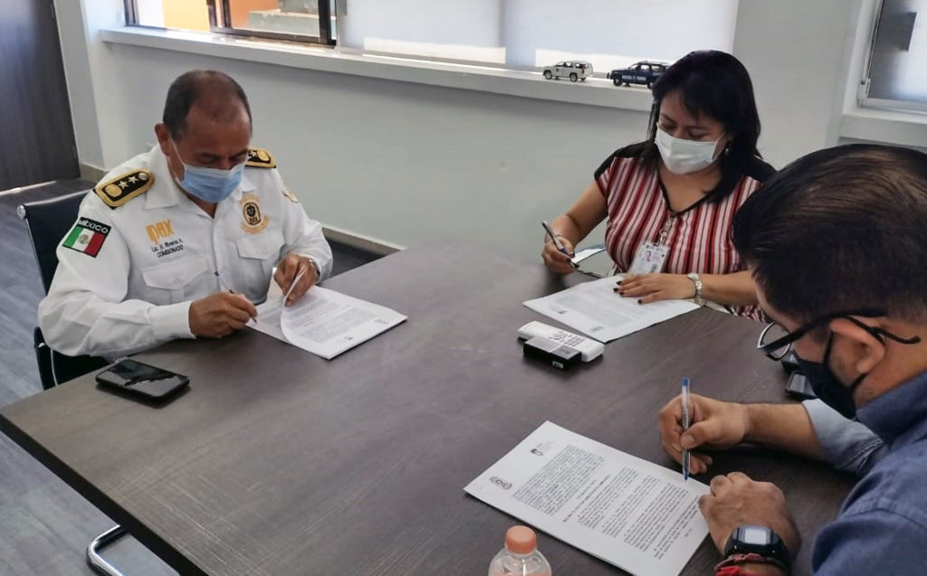 Firmaron el convenio de colaboración, el comisionado del IPAX, Héctor Manuel Riveros Hernández y el director de ARSPS, Rodolfo Yáñez Mantilla; estuvieron presentes Mirna Vanessa Ceballos Cinta, gerente de Desarrollo Humano y Capacitación del IPAX y Felipe de Jesús Landa López, subgerente de Contratos y Convenios del IPAX.