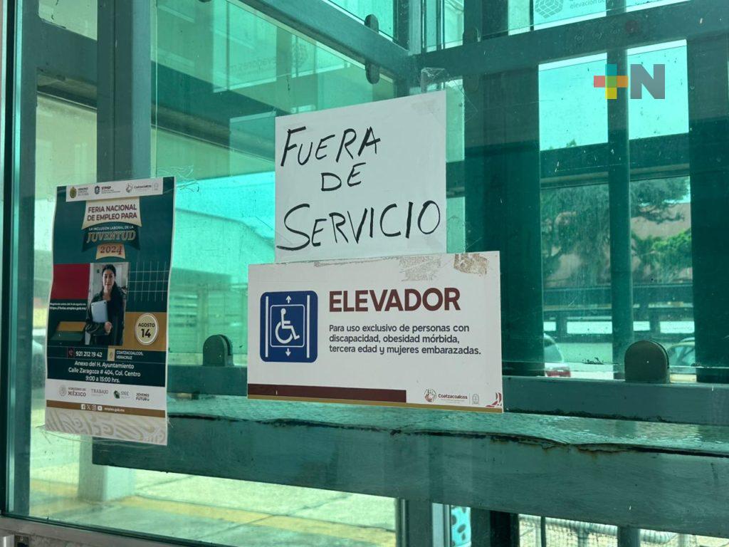 Coatzacoalcos, Ver.- Tras tres semanas sin funcionamiento, el elevador del palacio municipal de Coatzacoalcos nuevamente se puso en operación.