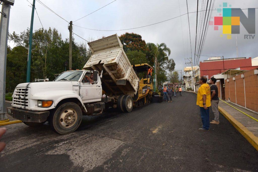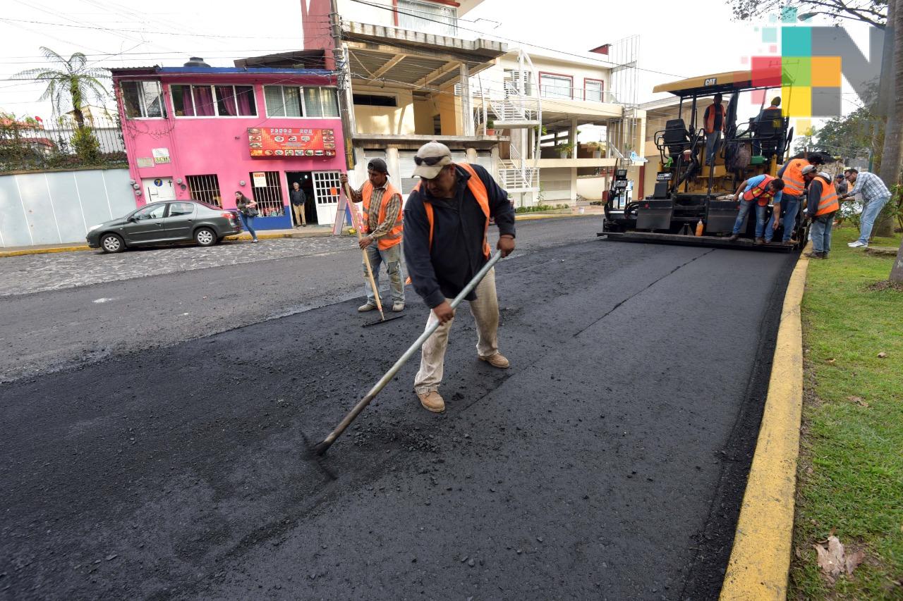 Xalapa, Ver.- El presidente municipal Hipólito Rodríguez Herrero supervisó los trabajos de reencarpetado de la calle Díaz Mirón, entre Juventino Rosas y Rébsamen, que realiza personal de la Dirección de Obras Públicas.